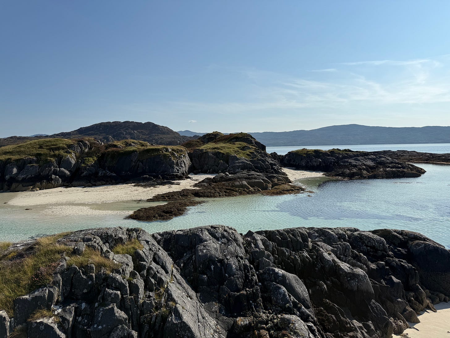 I flew to Glasgow, rented a car and drove 4 hours. They pick you up on the dock and shuttle you across to the island. You have to bring everything you need because you're there for a week without access to the mainland!